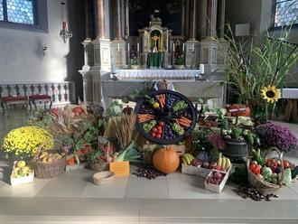 Am Entedanksonntag feierten wir in der Pfarrkirche Hirschhorn einen Familiengottesdienst, welchen der Junge Chor musikalisch begleitete. Pater Alex weihte den üppigen Erntedankaltar und anstelle der Predigt hörten wir die Geschichte von der kleinen Feldmaus Frederik, welches die Kinder spielerisch erzählten: Seine Familie sammelte eifrig Vorräte für den langen Winter, nur nicht Frederik. Er sammelte Sonnenstrahlen, Farben, Töne und Lieder und Wörter. Als alle Vorräte im langen kalten Winter aufgebraucht waren, haben genau diese Vorräte zum Überleben beigetragen.