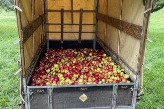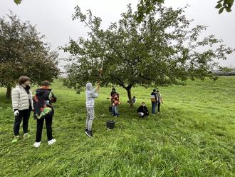Wir liefen gleich morgens begeistert los und die kleinen Erntehelfer pflückten über 500kg Äpfel von den Apfelbäumen auf der Streuobstwiese der Stadt Oberzent. Am nächsten Tag wurde die Ernte von unserem Jugendpfleger direkt an die Kelterei gefahren und wird dort zu Saft gepresst. Ein besonderes Dankeschön geht an Herrn Dieter Berg, ehemaliger Vorsitzender des Imkervereins „Beerfelder Land“, der das neue Apfelprojekt ermöglichte und auch seinen Anhänger zur Verfügung stellte.