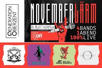 Der Verein „Generation Oberzent e. V.“ veranstaltet am 08.11.2025, ab 19:00 Uhr (Einlass 18:00 Uhr) in der Alten Turnhalle in Beerfelden den Hard Rock Event „November Lärm“ mit den drei regionalen Bands „Schlagsaite“, „Unemployed“, „D! and the Bang Bunnys“ sowie die Mannheimer Band „Into the Halo“. GO! kooperiert dabei mit Jürgen Nebel und der Aktion „Du musst kämpfen“, welche am Ende auch eine Spende erhalten wird. Dank der finanziellen Unterstützung von der Entega AG, der Stiftung der Sparkasse Odenwaldkreis, der Energiegenossenschaft Odenwald eG und der Werbeagentur 647 Media GmbH konnte GO! diesen Event wieder in Angriff nehmen.