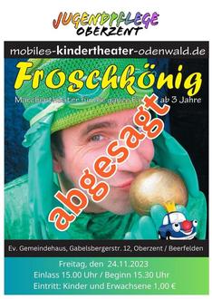 Mit Bedauern müssen wir mitteilen, dass wir das geplante Theaterstück „Der Froschkönig“ am Freitag, den 24.11.2023 absagen müssen. Aufgeschoben ist nicht aufgehoben. Wir suchen nach einem Ersatztermin, damit uns die Traumhochzeit des Froschkönigs nicht verloren geht.