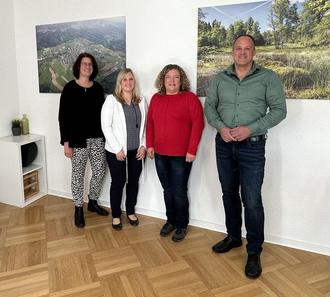 „Ich freue mich, dass ich bei der Stadt Oberzent meinen Job als Bautechnikerin in Teilzeit ausüben kann und nur einen kurzen Fahrtweg habe“, sagt Annika Seip (Foto 2. v. l.) über ihren Start bei der Stadt Oberzent. Bürgermeister Kehrer (Foto rechts) freut sich, die gelernte Bautechnikerin als neue Mitarbeiterin begrüßen zu dürfen und wünscht ihr mit Verwaltungsleiterin Stefanie Ampferl (Foto links) und der Personalratsvorsitzenden Franziska Johe (Foto 2.v.r.) alles Gute.