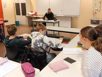 Mevlüt Erdogan, der Vorsitzende der muslimischen Gemeinde in Oberzent, zu Gast im Religionsunterricht