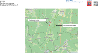 Der Durchgangsverkehr wird die gesamte Bauzeit ab Finkenbach zunächst über die L 3119 Richtung Oberzent, und dann Richtung Süden über die L 3410 durch Rothenberg und Kortelshütte umgeleitet (siehe Abbildung).