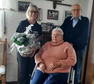Unser Foto zeigt die Jubilarin mit ihrem Mann Heinrich (rechts) mit der Ersten Stadträtin (links)