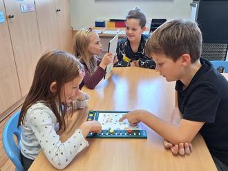 Die Paten der Erstklässler zeigten ihren Schützlingen wie man die Platten richtig benutzt und wie herum die Aufgabenblätter kommen. Am Ende der Stunde klappte das bei allen ganz alleine. Die Zweit- und Drittklässler sind ja bereits Logico-Profis und so wurden viele Aufgaben an diesem Tag geschafft. Auch wenn Kinder im Unterricht früher mit ihren Aufgaben fertig sind, dürfen sie Logicos bearbeiten. Einen kleinen Anreiz gibt es auch noch fleißig zu sein: Wenn man 10 Logicos bearbeitet hat bekommt man einen Hausaufgabengutschein. Also heißt es ganz oft: Logico – logisch!