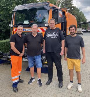 Auf dem Foto von links nach rechts: Timo Bauer (örtlicher Personalrat), Bernd Bechtold (Leitung Betriebsdienst), Michael Baranyai, Sascha Schwinn (Straßenmeister)