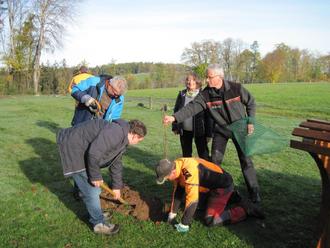 Über 80 Bürgerinnen und Bürger aus dem Odenwaldkreis waren am Freitag, 11.11.2022 im Einsatz und packten im Rahmen von 13 parallel stattgefundenen Baumpflanzaktionen im Kreisgebiet tatkräftig an. Die Termine wurden von HessenForst koordiniert und vom Odenwaldkreis und den Kommunen unterstützt. Die Anschaffung der insgesamt 200 Pflanzen wurde durch die Unterstützung der Stiftung der Sparkasse Odenwaldkreis möglich gemacht.