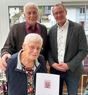 Am 15. November feierten die Eheleute Ilse und Georg Herbert Ihrig das Fest der Diamantenen Hochzeit. Unter den zahlreichen Gratulanten aus Familie, Nachbarschaft und Freunden war auch Stadtrat Erik Sauer, der den Jubilaren zu ihrem Ehrentag im Namen der Stadt Oberzent gratulierte.