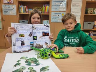 „Wir freuen uns darüber, dass Karl zu uns gekommen ist. Wir sind jetzt die Schildkrötenklasse. Unsere Klassenlehrerin Frau Lilienthal hat ihn für uns gekauft.“