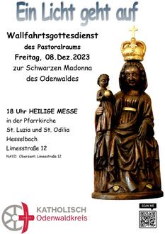 Zu einem festlichen Gottesdienst am 8. Dezember, dem Fest Maria Empfängnis, sind alle Gläubigen und Interessierten des Pastoralraumes Odenwaldkreis um 18 Uhr in die katholische Kirche zur Schwarzen Madonna des Odenwaldes nach Hesselbach eingeladen. (NAVI: Oberzent; Limesstraße 12)