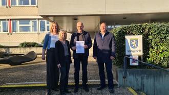 Das Bild zeigt (v.I.n.r.) Frau Diepenthal, Frau Weinrauch, Herr Löffler und Herr Kehrer vor dem Amtsgericht Michelstadt.