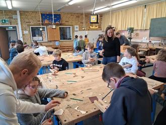 Nach der gemeinsamen Begrüßung durch Stufenleiterin Angela Jöst und Schulleiter Bernd Siefert führte dieser durch die Schule. Naturwissenschaftliche Räume, Musik, Aula, Computer- und Klassenräume sowie Mensa wurden besichtigt. Beim Werken mit Dennis Hemberger und der Stellvertretenden Schulleiterin Heidi Domack sägten die Schüler Schlüsselanhänger aus, die sie mit nach Hause nehmen durften. Später stand Kochen mit Angela Jöst auf dem Programm.