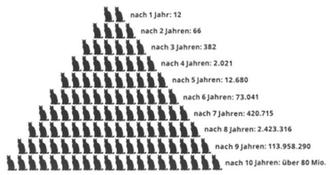 Beispiel für eine stetig steigende Katzenpopulation; Bildquelle TSI Odenwald e.V.