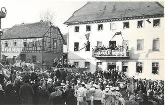 Wenn am Dienstag 21. Februar wieder zur Stürmung der Rathäuser in Beerfelden und Unter-Sensbach angesetzt wird, können sich die Fastnachter auf eine gehörige Tradition berufen. Wie aus dem Foto von etwa 1960 zu ersehen ist (zur Verfügung gestellt von Almut und Kurt Schultz), machte damals schon der närrische Lindwurm eine Pause, um die erstürmten Räumlichkeiten des Rathauses Beerfelden dem närrischen Volk zu präsentieren. Sowohl die Rathausmitarbeiter*innen als auch die stürmenden Vereine freuen sich über viele Bürgerinnen und Bürger, die den traditionsreichen Spektakeln zuschauen!