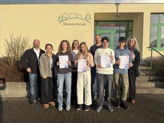 Alle Schülerinnen und Schüler der 8. Jahrgangsstufe der Oberzent-Schule Beerfelden haben am Mathematikwettbewerb 2025 des Landes Hessen teilgenommen. Vor den Weihnachtsferien wurden die Schulsiegerinnen und Schulsieger der Oberzent-Schule des diesjährigen Mathematikwettbewerbs ausgezeichnet. Cara Dereh, Nora Betz, Elija Alagöz und Felix Beck sind die Besten des jeweiligen Kurses und haben sich für die zweite Runde des Mathematikwettbewerbs, den Kreisentscheid am 04.03.2026 qualifiziert.