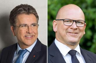 Zur Europawahl gehen und Zivilcourage zeigen: Dazu ermuntern Landrat Frank Matiaske (rechts) und der Kreistagsvorsitzende Rüdiger Holschuh die Odenwälderinnen und Odenwälder im Jahr 2024.