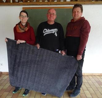Über die neue Matte für das Gütterbacher Dorfgemeinschaftshaus freuten sich (von links) Franziska und Reinhard Künzel sowie Marin Krämer.