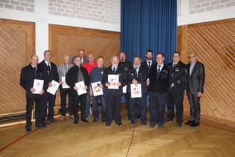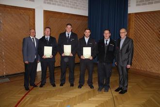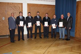 Über Anerkennungsprämien konnten sich Timo Arras, Fabian Blumenschein und Christian Körber (jeweils 20 Jahre aktiv), Timo Münch (30 Jahre), Edwin Schmahl (40 Jahre) und Jürgen Walther (50 Jahre) freuen.