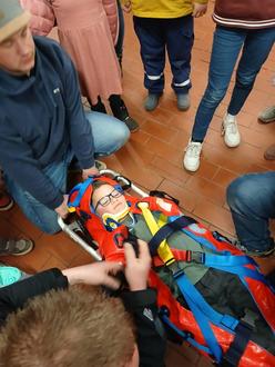 Bevor Gerüchte aufkommen, es handelte sich um eine Übung der Wasserteufel Mossautal zum Thema Erste Hilfe. Wie setzt man einen Notruf ab? Was mache ich, wenn ich eine bewußtlose Person finde? Wie funktioniert das mit der Herz-LungenWiederbelebung? Viele Antworten auf nochmehr Fragen hatten Robin Arns und Sven Siefert mitgebracht. Gemeinsam mit den Mitgliedern der Jugendfeuerwehr Mossau wurde der Rettungswagen erkundet. Wann darf man das schon mal? Es wurde eindrucksvoll dargestellt, wie man sich in einer Vakuummatratze fühlt und fast alles durfte auch ausprobiert werden. So sollen die Kinder Sicherheit erhalten, wenn sie zu einer Notlage hinzukommen und etwaige Ängste abbauen. Den einzigen Fehler, den man in einer Notlage machen kann, ist nichts zu machen.