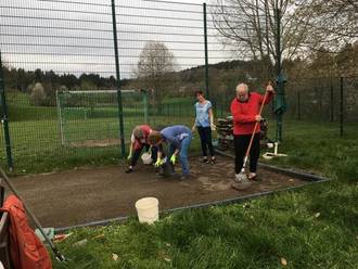 Gemeinsam das Dorf auf Vordermann bringen, das hatten sich die 25 Güttersbacher vorgenommen, die am Samstag bei gnädigem Wetter am Dalles-Brunnen zusammenkamen. Dabei, wie auch in den letzten beiden Jahren, auch einige Kinder, über deren Mithilfe wir uns immer besonders freuen. Immerhin geht es bei Aktionen wie diesen auch darum, den Nachwuchs für die tätige Mitarbeit in der Gemeinschaft zu gewinnen, denn er ist die Zukunft des Dorfes. Die Kinder haben unter fachkundiger Anleitung das Bienenhotel weiter mit Nistmöglichkeiten für die so nützlichen Wildbienen bestückt. Dabei mussten sie vorsichtig sein, da einige, z.B. die gehörnte Mauerbiene, bereits eifrig Pollen in die bereitgelegten Bambusröhrchen eintrugen. So konnten Mira und Moritz Hauswald gut beobachten, dass ihre Arbeit Früchte trägt. Eine andere Gruppe um Michel Weyrauch machte den Bouleplatz wieder startklar, während Silke Christmann mit einer Truppe die Bänke im Ortskern aufarbeitete. Außerdem wurden unter Herbert Muths Regie vier neue Bänke bei der Gemeinde abgeholt und aufgestellt. Zu guter Letzt wurde noch eine neue Blühfläche angelegt. Im Anschluss saßen alle Helferinnen und Helfer gemütlich bei der Vesper zusammen und belohnten sich für den gelungen Einsatz. Vielen Danke an alle, die dabei waren!