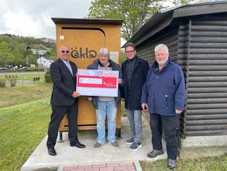 Auf dem Bild mit der Übergabe sind die Vertreter der Spender zu sehen: für den Kerweclub und Getränke Dingeldein: Werner Dingeldein, für die Chorgemeinschaft Mossautal deren Rechner Karl Ebert und Vorsitzender Reinhard Kübler, sowie Bürgermeister Dietmar Bareis, der sich für die großzügige Spende herzlich bedankte.