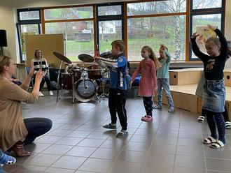 Erstklässler*innen beim Tanzen
