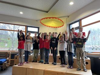 Klasse 3a beim Sprechchor „Fußball“