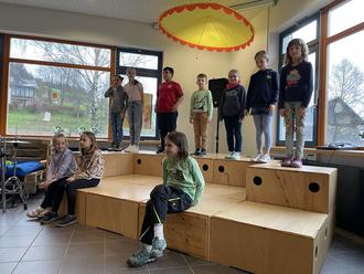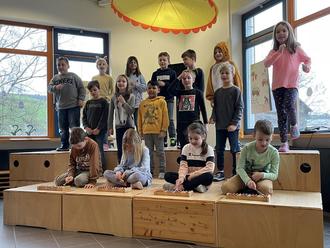 Klasse 1 bei ihrem Gesangsbeitrag