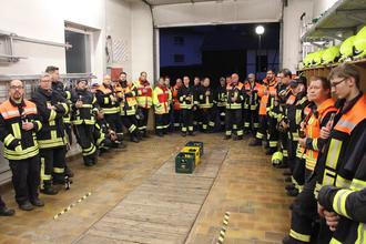 Nachdem die Retter dann zu dem Fahrer vorgedrungen waren, kamen die Voraushelfer zum Einsatz. Diese kümmerten sich neben dem Insassen des Autos auch um die Betreuung der weiteren Verletzten, bis diese dem Rettungsdienst übergeben werden konnten. Ein plötzlich aufgetretener Brand aus dem Motorraum des Kleinwagens sorgte kurze Zeit für eine Änderung der Lage, da noch eine Wasserversorgung aus den Löschfahrzeugen hergestellt werden musste. Zu alledem mussten die Übungsteilnehmer ihre Aufmerksamkeit auch noch auf Autofahrer lenken, die trotz Absicherung des Übungsbereiches ihre Geschwindigkeit erst direkt vor dem Geschehen abbremsten. Nachdem die Aufgaben zur Zufriedenheit von Dominik Hofmann gelöst worden waren, beendete er die Übung, für die Einsatzkräfte enorme Mengen an Material einzusetzen hatten, und lud zur Manöverkritik in das Güttersbacher Feuerwehrhaus ein.