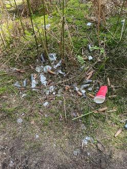 So sah es am Tag nach dem Mai-Feiertag an der Sandbuche aus. Vandalen haben unzählige Flaschen zerbrochen und alles auf den Weg und in den Wald geworfen. Ein aufmerksamer Mitbürger hat den Unrat aufgesammelt und ordentlich entsorgt.