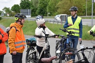 Bestandteil des Weges sind mehrere Stationen, an denen Linkenheil und Schuhmacher auf Verbesserungen im Radewegenetz aufmerksam machen und spannende Einblicke in die Radverkehrsplanung geben. So erfuhr die Gruppe, die am Montagnachmittag mitfuhr, viel Interessantes.