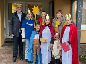 Erster Beigeordneter Harald Eisenhauer bedankte sich bei den Sternsingern mit einer kleinen Spende und Süßigkeiten.