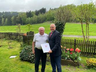 Herr August Wilhelm Hörr aus Hiltersklingen konnte am 8. Mai 2023 seinen 90. Geburtstag feiern. Unter den zahlreichen Gratulanten war auch der Mossautaler Verwaltungschef, Bürgermeister Dietmar Bareis, der die herzlichsten Glückwünsche der Gemeinde Mossautal überbrachte.