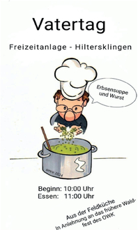 An Vatertag heißt’s wieder: ran an die Suppenkelle! Die Interessengemeinschaft Erbsensuppe lädt alle Ausflügler, Wanderer, Freunde, Gönner und Hungrigen herzlich ein zur legendären Erbsensuppe – frisch gekocht nach altem OWK-Rezept in der original Feldküche.