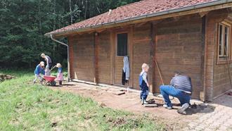 Auf dem Sportplatz wurde rund um die Hütte sauber gemacht und am Treppenaufgang freigemäht.