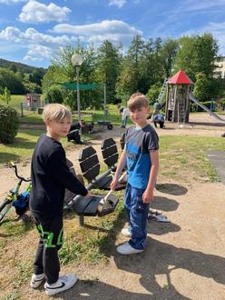 Auf dem Spielplatz wurde geharkt, gerecht, gestrichen und gesenst. Das Dach des Spieleturms leuchtet nun wieder in roter Farbe, der Gehweg ist vom Unkraut befreit und rund um den Dorfbrunnen wurden die Bänke gestrichen, sowie das Pflaster vom Wildkraut befreit.