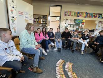 Dass sich die Kinder über ihr Buchgeschenk gefreut haben, war Anfang Mai zu sehen, als uns Frau Schindelhauer-Kaufmann von der Buchhandlung Schindelhauer in Michelstadt die Bücher überreichte. Frau Schindelhauer-Kaufmann erzählte uns über die Entstehung und Bedeutung des Welttages des Buches. Sie berichtete aber auch über ihre Arbeit in ihrer Buchhandlung und bereitete eine Buchausstellung vor.