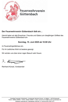 Freiwillige Feuerwehr Güttersbach • Vorsitzender Reinhard Künzel • Im Städtel 1 • 64756 Mossautal