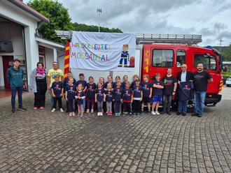 Das Foto zeigt die Wasserteufel Mossautal und ihre Betreuer sowie stellvertretend für den Verein Bürgersinn Herrn H. Eisenhauer. Tamara Münch ( Leiterin der Wasserteufel Mossautal)