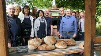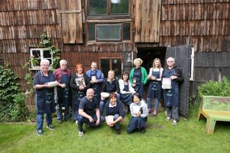 Großer Anklang fand auch das Geschenk einer eigens für den Kurs kreierten Profi-Schürze, die an die Teilnehmer verteilt wurde. Die bunte Gruppe setzte sich aus Männern und Frauen unterschiedlichsten Alters zusammen, mit und ohne Erfahrung im Brotbacken. Einige kannten bereits Gabors und Peters Kreationen, andere wollten Neues lernen oder auch einmal im Steinofen backen.