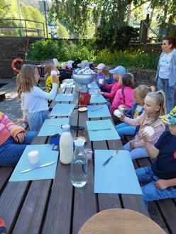 Am Dienstag, 20.05.25 machten sich die Schulanfänger aus der Kita „Unterm Eulennest“ schon früh auf den Weg zur Molkerei in Hüttenthal.