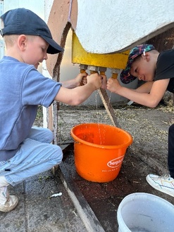 In zwei Gruppen ging es dann zügig los: Während eine Gruppe direkt eigene Melkversuche an der Holzkuh Liselotte tätigen durfte und dabei ein kleiner Wettstreit um die gemolkene Wassermenge entfachte, durften die restlichen Löwen gemeinsam mit Frau Koch den automatisierten Melkvorgang im Fischgrätenmelkstand ansehen.