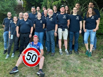 Am Mittwoch, dem 28.06.2023 stand ein besonderer Besuch bei unserem Wehrführer Ingo Katzenmeyer an, denn an diesem Tag feierte er seinen 50. Geburtstag. Bereits im Vorfeld machten sich die Kameradinnen und Kameraden der Freiwilligen Feuerwehr Hiltersklingen Gedanken, was sie ihrem Wehrführer denn schenken könnten. Letztendlich fiel die Entscheidung auf ein Schild mit den Unterschriften der Einsatzabteilung, sowie der Jugendfeuerwehr. Zusätzlich wurde noch eine Box mit einem Geldpräsent überreicht. Da Ingo immer für jeden Spaß zu haben ist, durfte auch an diesem Abend etwas Lustiges nicht fehlen. So bekam er direkt zu Beginn des Abends, im Beisein der insgesamt neunzehn Kameradinnen und Kameraden, ein Krönchen aufgesetzt und eine Halskette umgehängt. Anschließend lud der Gastgeber zu leckerem Essen und kühlen Getränken, so wurde gemeinsam auf das Geburtstagskind angestoßen. Ein ganz besonderer Dank auch an Tanja für die Vorbereitung der Vielzahl an Leckereien.