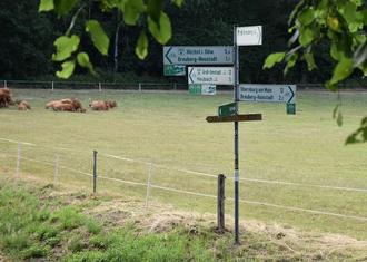 Knotenpunkt: An dieser Stelle unterhalb der Burg Breuberg führen Radwege in mehrere Richtungen.