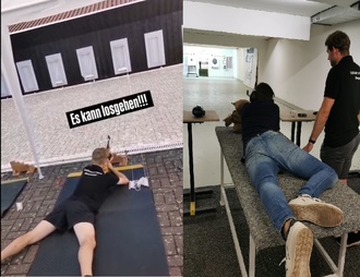 Auf der sonnigen Außenanlage bei sommerlichen 35 Grad wurde gleichzeitig das Sommerbiathlon getestet. Hier konnten alle Interessierten unter Anleitung der Vereinsmitglieder mit dem Gewehr auf fünf Klappscheiben zielen – und das direkt liegend. Nach jedem Schuss klappte die Scheibe hoch, sodass sofort sichtbar war, ob getroffen wurde. Das Besondere: Nach jedem Schießen ging es noch eine Runde durch das Gras, um den Puls in Schwung zu bringen, bevor es erneut an die Scheiben ging. Das sorgte für jede Menge Spaß, Nervenkitzel und sommerliche Action – trotz der Hitze. Die Kombination aus Schießen und Laufen machte den Tag zu einem echten Highlight für alle Altersgruppen.