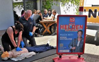 „Trotz des heißen Wetters war die Resonanz absolut zufriedenstellend“, resümiert Sabine Kugelmeier, Teamleiterin der Breitenausbildung beim Roten Kreuz in Erbach. Angestoßen durch die Radiowerbung des Senders hr3 in Zusammenarbeit mit dem DRK, durften sich seit Ende Mai 1.100 Hessinnen und Hessen landesweit bei 30 Kreisverbänden der Hilfsorganisation für einen kostenfreien Kurs in Erster Hilfe bewerben. Unter dem Motto „Mehr Helden für Hessen“ konnten sie dann solides Können auf diesem wichtigen Gebiet als zukünftige Ersthelfer erlangen.