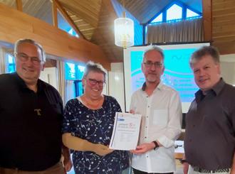 v.l. Diakon Volkmar Raabe, PGR-Vorsitzende von Bad König Rita German, Koordinator des Pastoralraumes Pastoralreferent Cyriakus Schmidt, Leitender Pfarrer des Pastoralraumes Pfarrer Harald Poggel. Mitglieder des AK ISK übergeben der Leitung des Pastoralraumes den Entwurf eines ISK