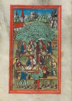 Unter der Dorflinde, die zentral im mittelalterlichen Dorf zu finden war, fanden verschiedenste Zusammenkünfte statt. Wenn eine Gerichtstagung angesetzt war, trat der Schultheiß wie folgt auf: „Der Schultheiß mit weißem Mantel, den Gerichtsstab in der rechten Hand, hegte das Gericht in feierlicher Weise, ermahnte zur Wahrheit, gebot Frieden und Wohlverhalten, erinnerte die Schöffen an ihren Eid und daran, daß sie einst Gott dem Allmächtigen am Jüngsten Tag Rede und Antwort zu geben hätten.“