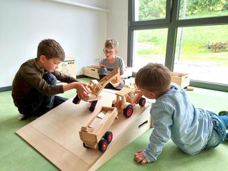 Die Kindergartenkinder starteten mit einer Schnupperwoche, in dem sie mit ihrer Bezugsgruppe jeden Tag einen Raum erkundeten, bevor jeder Bereich des Kindergartens für alle Kinder geöffnet wurde. Nach der räumlichen Trennung in den beiden Ausweichquartieren trafen sich nun endlich alle Kinder wieder.