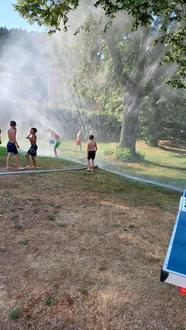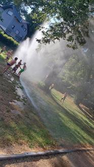 Bei sommerlichen Temperaturen verlegten die Wasserteufel Mossautal ihre Freizeitgestaltung in das Schwimmbad Güttersbach. Rasch wurde die Tragkraftspritzenpumpe in der Nähe des Beckenrandes in Stellung gebracht und in Betrieb genommen. Unter den staunenden Augen vieler kleiner und großer Badegäste wurde das Schwimmbadwasser großzügig auf dem Gelände verteilt. Alle hatten einen riesen Spaß.